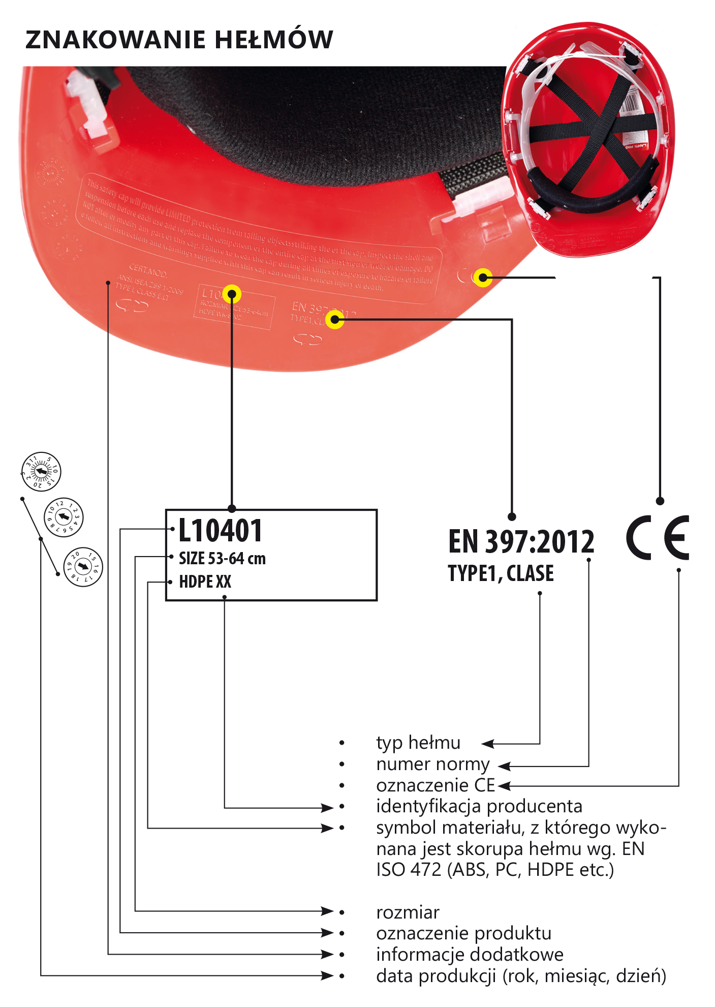 EN 397 - Przemysłowe hełmy ochronne. Norma określa wymagania konstrukcyjne i parametry ochronne, metody badań i wymagania dotyczące znakowania hełmów ochronnych dla przemysłu. Ustalono wymagania obowiązkowe i dodatkowe dotyczące parametrów ochronnych.