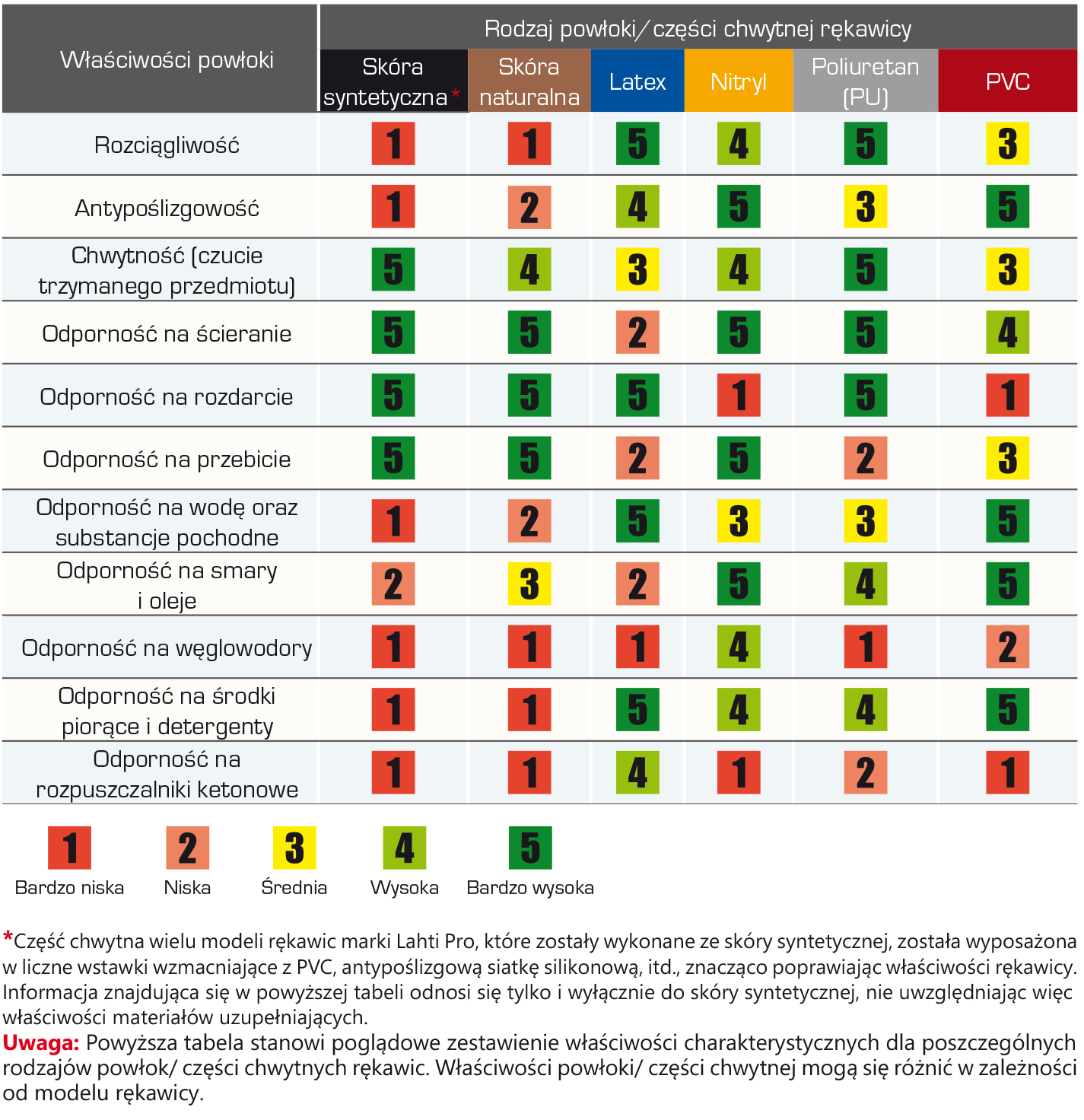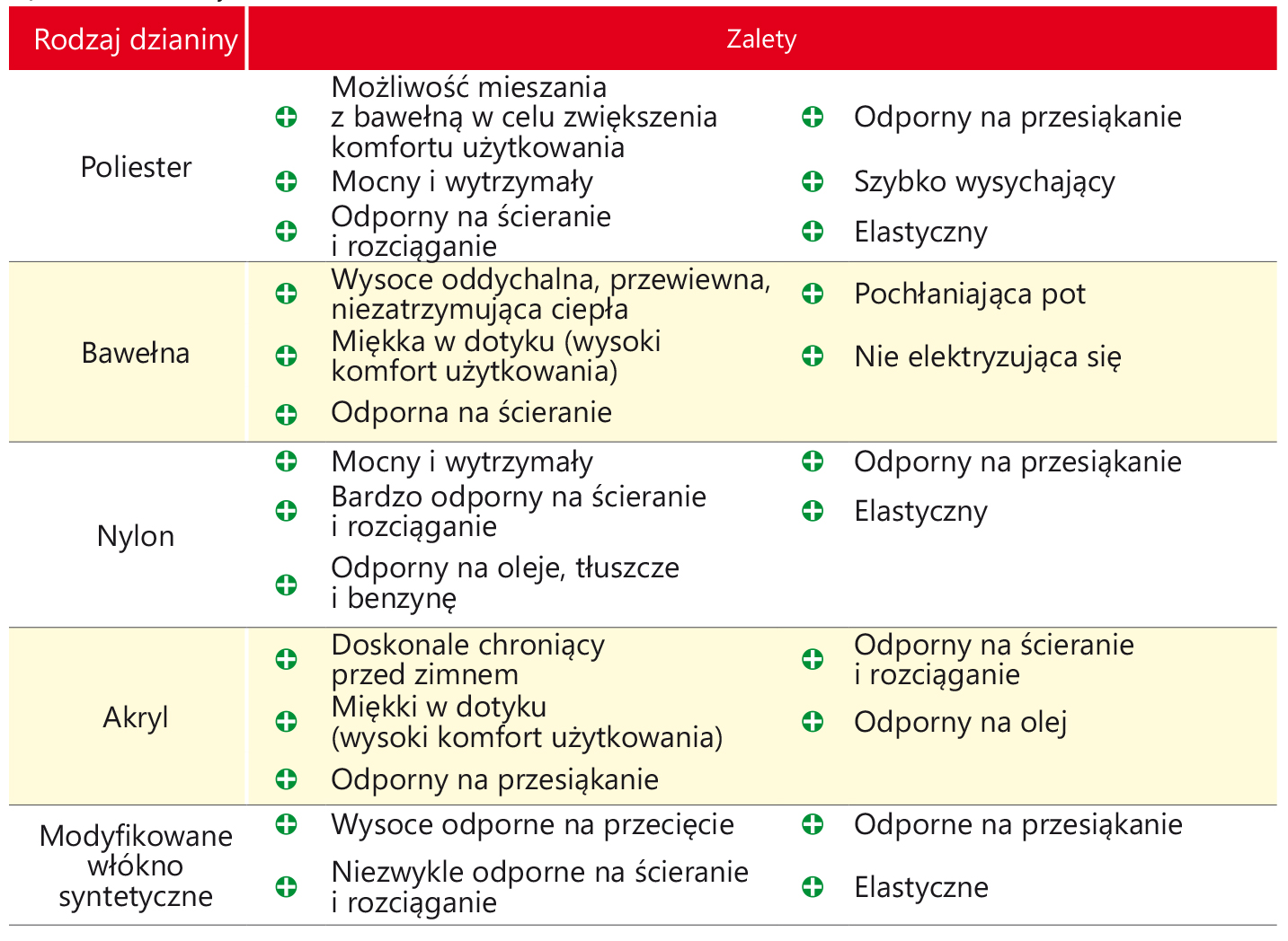 Poniższa tabela przedstawia główne zalety poszczególnych dzianin wykorzystywanych do produkcji rękawic ochronnych:
