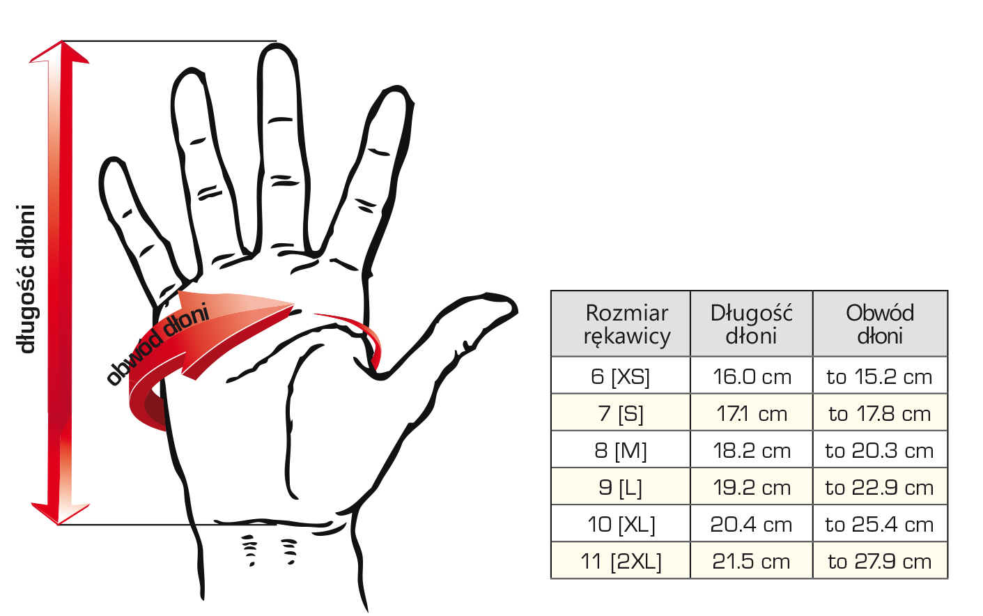 Poniższa tabela przedstawia wytyczne normy EN ISO 21420 w zakresie poszczególnych rozmiarów rękawic przypisanych do odpowiednich wymiarów dłoni. Rękawice ochronne marki Lahti Pro zapewniają użytkownikowi optymalne dopasowanie do dłoni, gwarantując zarówno bezpieczeństwo jak i dużą wygodę użytkowania.