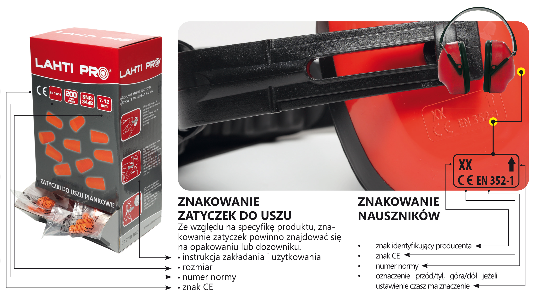 EN352-2 - Ochronniki słuchu - Wymagania ogólne - Część 2: Wkładki przeciwhałasowe. W normie określono wymagania dotyczące konstrukcji, projektowania, działania, znakowania oraz informacji dla użytkownika wkładek przeciwhałasowych.